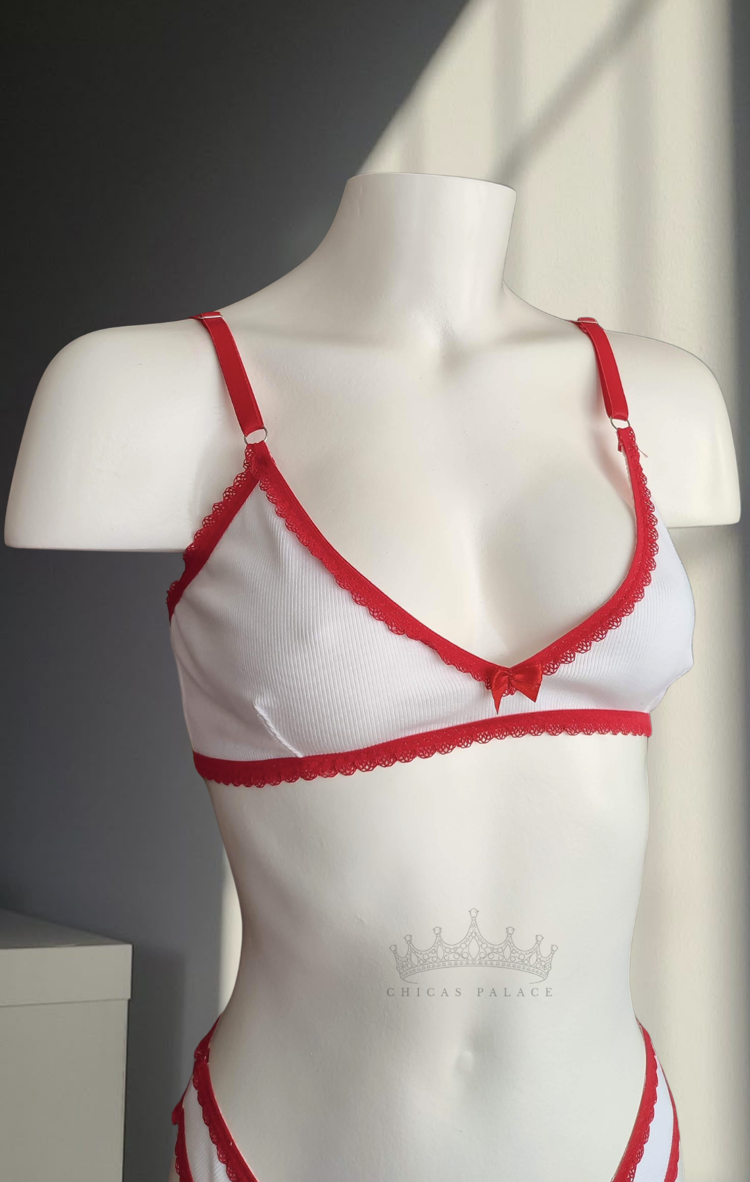 “Cherry Milk” combina tela blanca acanalada con delicados detalles en rojo que enmarcan la silueta con un toque coqueto. Su diseño cómodo y sin estructura rígida lo hace perfecto para el día a día, sin dejar de sentirte femenina.